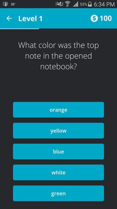 Pada awal setiap tingkat foto yang ditunjukkan kepada Anda. Amati foto dan mencoba untuk mengingat rincian sebanyak yang Anda bisa. Ketika timer habis, Anda akan diminta beberapa pertanyaan tentang foto tersebut. Cobalah untuk menjawab semua pertanyaan dengan benar.