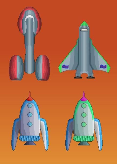 - 4 pesawat: setiap pesawat memiliki representasi fisika lain dan perilaku terbang untuk meningkatkan kesenangan (ufo, jet, roket, pesawat luar angkasa)