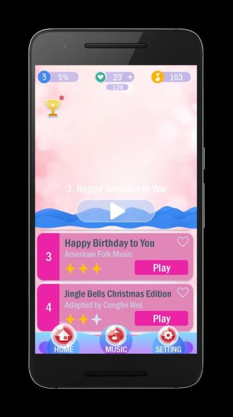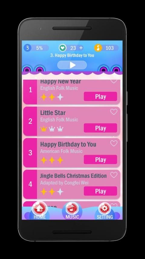 Menikmati Piano Pink Tiles: Game Piano - Jangan Tekan White Tiles dengan daftar musik yang tidak berperasaan.