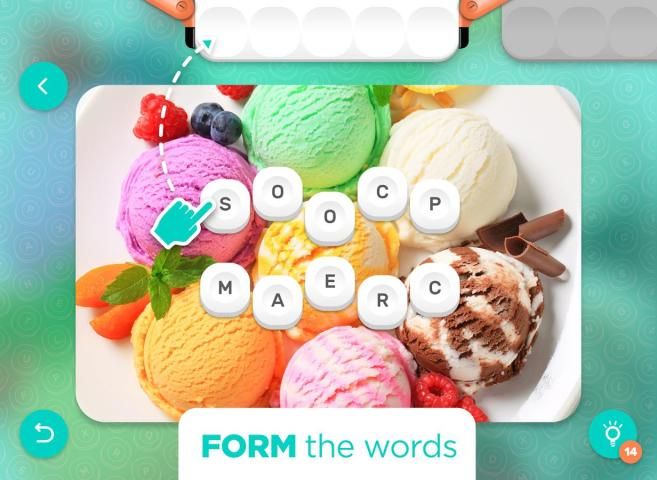Karena Anda maju melalui tingkat, Anda akan memiliki lebih banyak dan lebih banyak kata untuk menemukan untuk setiap gambar, yang berarti sebagian akan ditutupi oleh orang lain. Oleh karena itu, Anda harus menemukan kata-kata pertama yang mengungkapkan gambar dan semua huruf sedikit demi sedikit ... Tapi hati-hati, hanya huruf di atas dapat digunakan, jadi terserah kepada Anda untuk memilih yang tepat untuk membuka blokir lain.