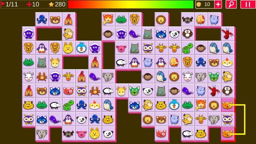 - Hubungkan 2 hewan dalam jenis yang sama dalam 3 baris untuk menghapusnya.