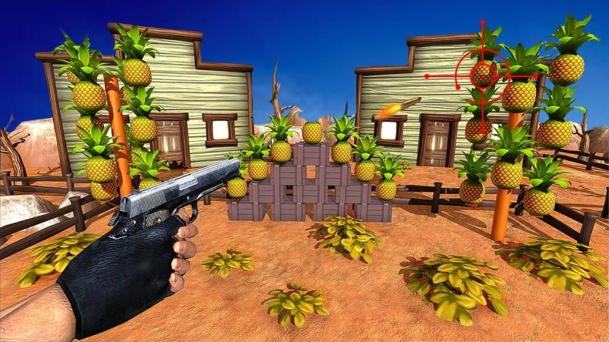 Menembak nanas mati menargetkan kepala ke kepala dengan pistol, senapan mesin, sniper kota modern, lebih banyak untuk mendapatkan Marlena seperti orang apel.