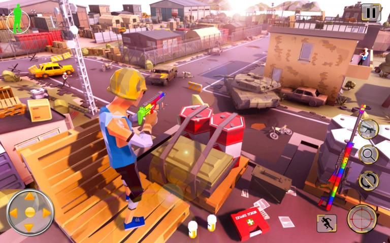 Enjoy first person pixel gun 3d survival game which gives chance to use parachute on the island, weapons, supplies health boxes and war equipment for best battle ground. Complete all the missions as a angry commando with free fire shooting game. The weapons are in old room you have found it in given time. After this mission start and the battle ground take place against your rivals. Pixel royale battlegrounds is one of the ultimate challenge to kill all the rivals and collect the map. Survival on island & win battle ground with heavy weapons is not easy task. Best time to learn how to use for level missions in survival squad 2019. When the level start try to keep eye on time and guns shooter because the limited time and health can destroy before starting mission refill the health box.