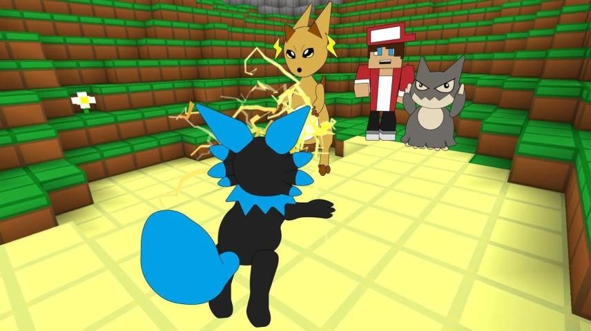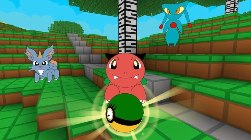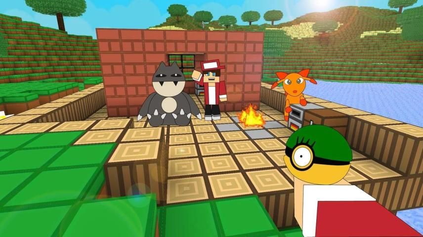 The meaning of the game is as follows - the user roams the area, calls the Pokemon and sends him to attack another, who peacefully grazes on the hill. It is worth noting that the creatures are not aggressive, that is, nobody is attacking the user. There is also a gameplay from Minecraft, that is, you can still destroy the blocks, as well as build your own buildings.