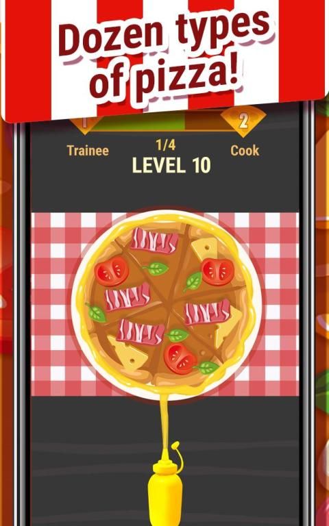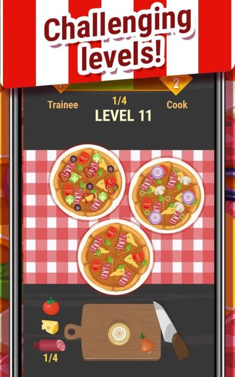 * Gameplay sederhana, menyenangkan dan menantang. Buang bahan ke beberapa pizza secara bersamaan!