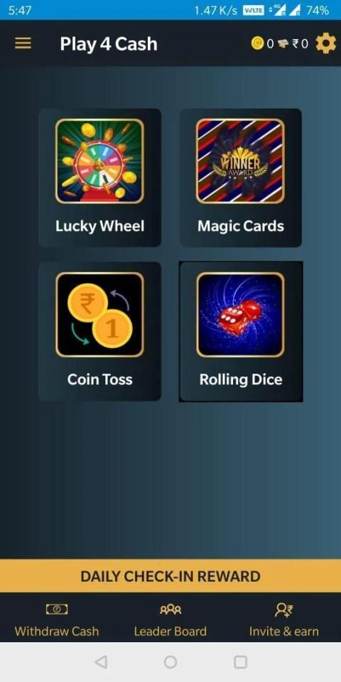 Everyone loves ludo, specially rolling dice. Play 4 cash presents Rolling Dice game for all its user. Its a simple rolling dice game. There will be 2 dices. You have to click on roll dice. After that, you will get points based on your dice score. You will get total 4 chances. Once your chances are over you can get more chances just by watching ads.