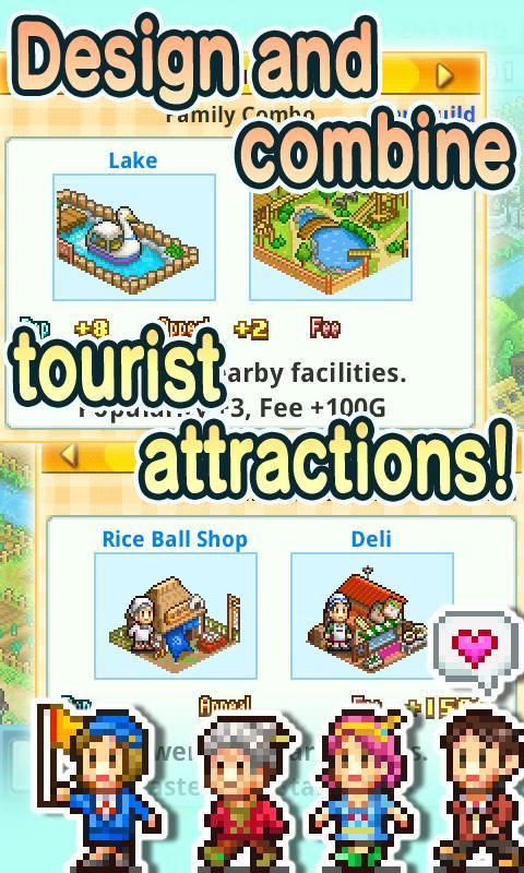 Merasa lebih ambisius? Meningkatkan penghasilan Anda dan gambar Anda melalui pariwisata! Dari balon udara panas untuk fasilitas olahraga, Anda dapat membangun objek wisata di kombinasi yang tak terhitung jumlahnya untuk menarik tinggi-belanja kota slickers.