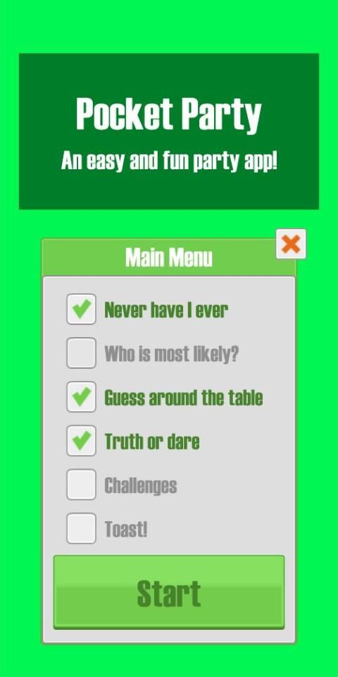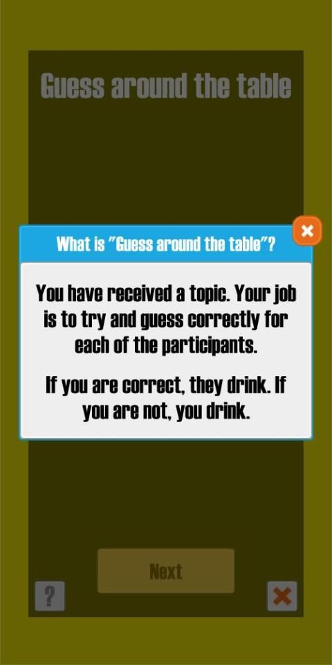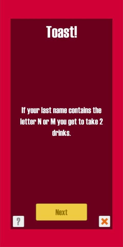 This app includes classic drinking games such as "Never Have I Ever...", "Who is most likely...", "Truth or Dare?" and many more, all for free!