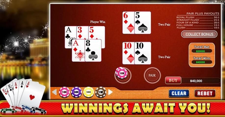 Variasi khusus ini Poker dimainkan pada dasarnya dengan tujuh kartu di antaranya lima terbaik digunakan untuk pembayaran. Ini memiliki dua mode untuk bermain - Ante dan Pair. Taruhan dapat ditempatkan pada kedua pada saat yang sama atau bahkan individual .Bet and Play bertaruh bermain di kompetisi pada pemutar tangan melawan tangan agen.