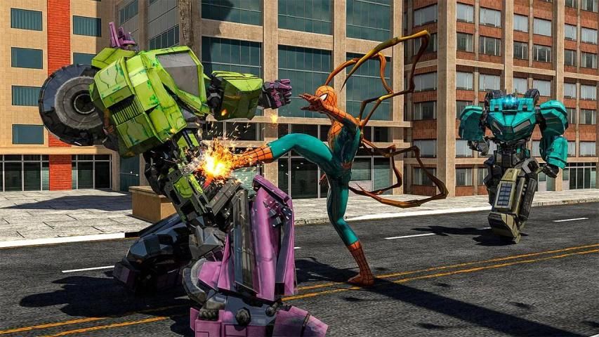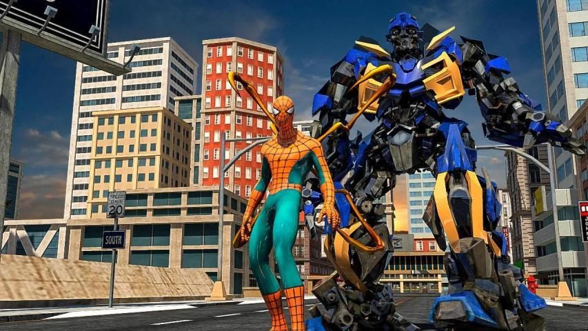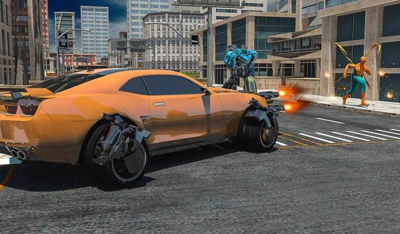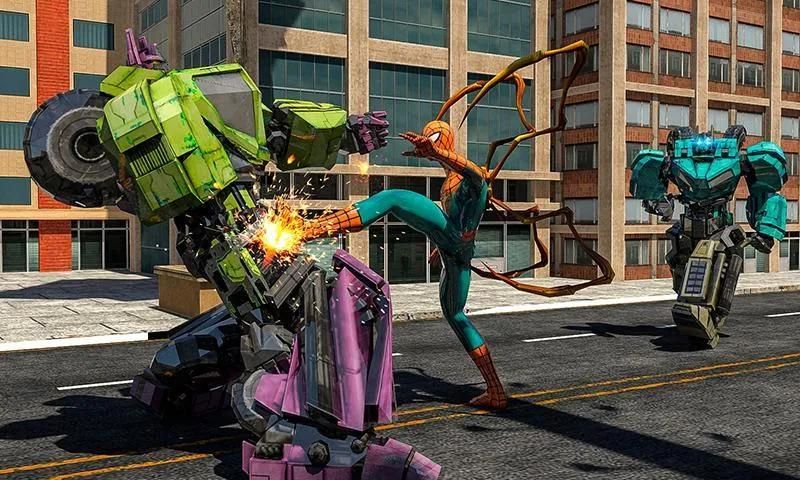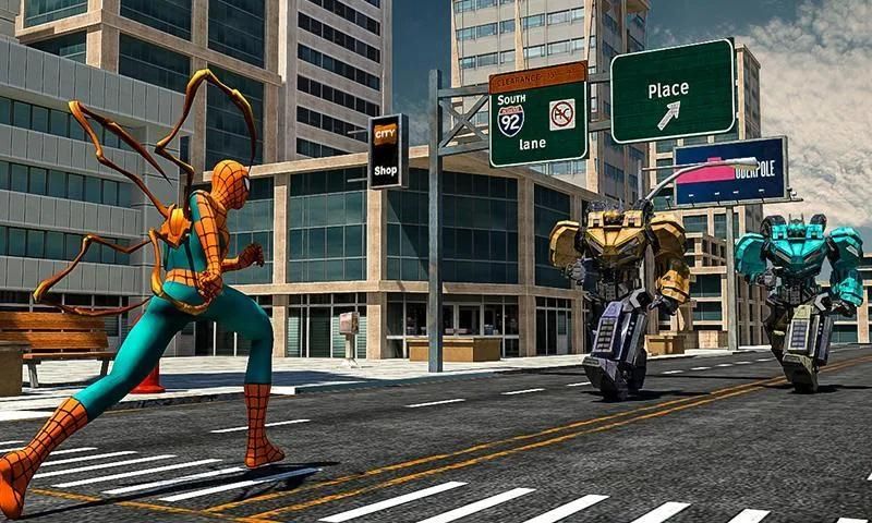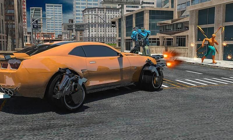 ✓ Robot polisi menembaki helikopter atau transformasi spider hero.