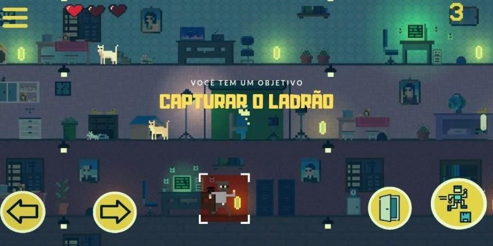 O Objetivo principal é a captura do bandido/fugitivo, mas também as moedas espalhadas pelos andares, que para ter acesso é preciso utilizar o elevador, o inimigo ao avistar o policial, ele irá correr no sentido contrário evitando se capturado, deixando o jogo mais “picante” legal né :D.