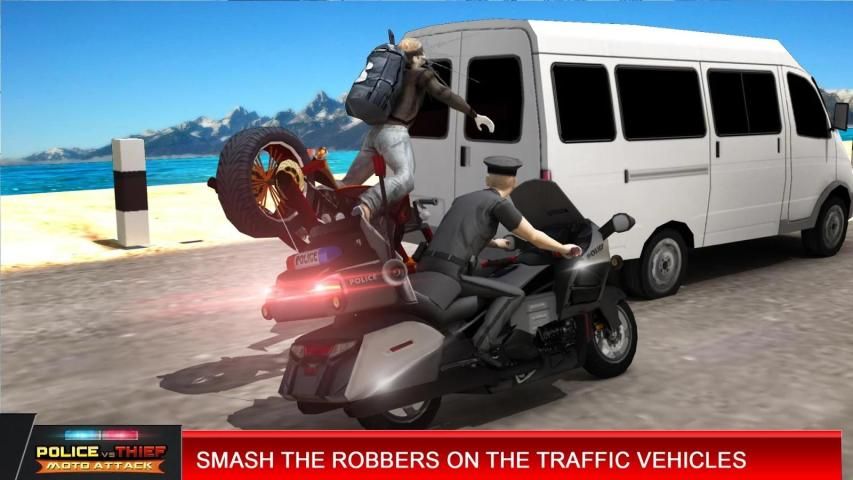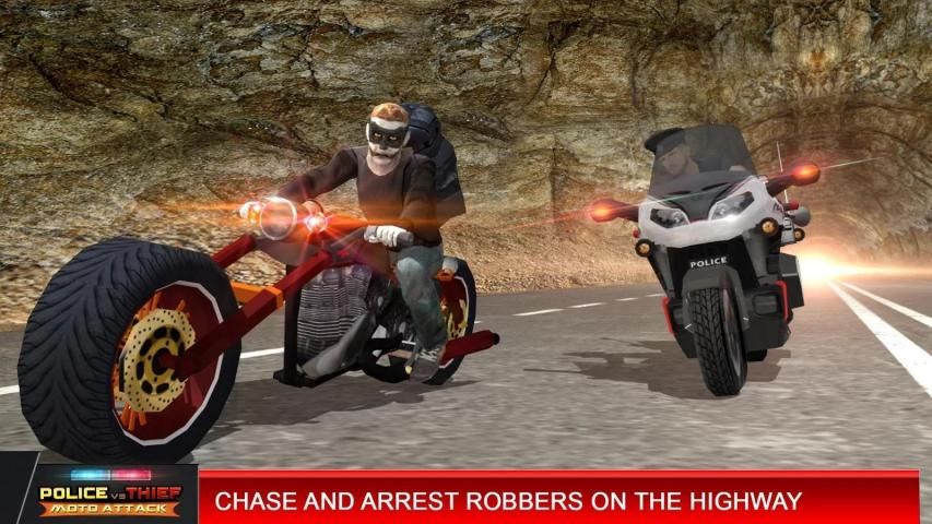 Bermain tindakan yang paling menarik dikemas Polisi Vs Thief 3D chase game. Para perampok menjarah uang dari bank dan melarikan diri melalui jalan raya di Vans dan motor Bikes. Misi ini adalah untuk naik moto Anda di jalan raya tak berujung, menghindari kendaraan lalu lintas, serangan / menembak perampok dan merebut uang pencurian dari mereka. Pengalaman polisi nyata penebusan pencuri jalan dengan "POLISI VS THEIF: MOTO ATTACK".