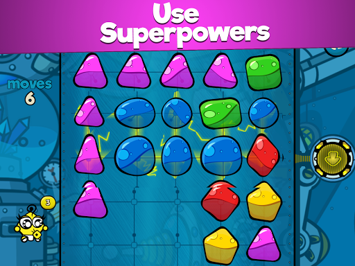 Dapatkan tantangan dalam dunia yang menakjubkan lebih dari 150 tingkat kerajinan yang memberi Anda pilihan untuk memperpanjang permainan Anda yang pintar dengan penggunaan Kekuatan Gelembung Supersonik. Lingkungan laboratorium luar biasa, pahlawan dengan kekuatan super spesial, banyak gelombang warna-warni dan manis yang penuh dengan jus buah misterius dan lezat.