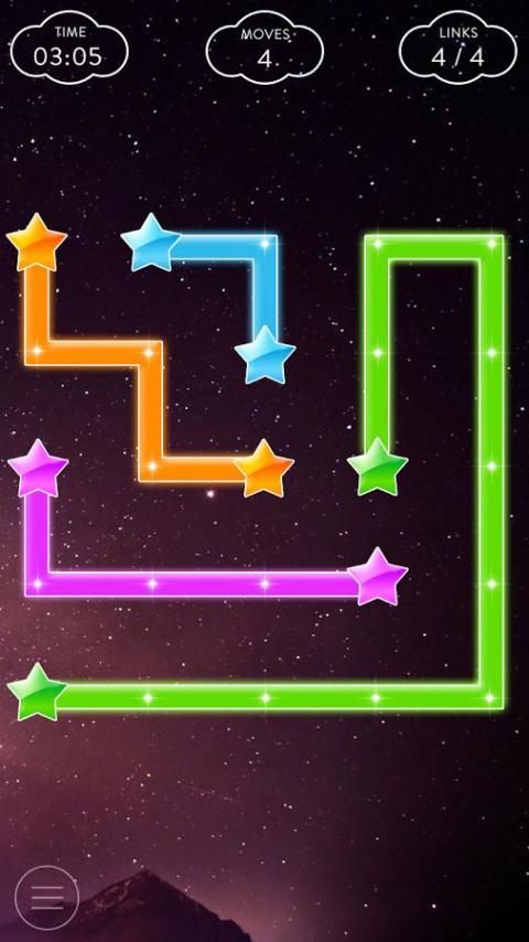 - Anda perlu menghubungkan titik-titik bintang warna yang sama dengan satu baris. Namun, pastikan Anda membuat garis dengan cara yang tidak akan mencegah menghubungkan titik-titik lainnya dengan garis-garis juga. Ketika Anda menyelesaikan menghubungkan semua pasangan, Anda telah menyelesaikan tingkat! sudah selesai dilakukan dengan baik! jalur koneksi Anda terbatas, jadi pastikan setiap bintang memiliki hubungan yang jelas. mencoba untuk menutupi semua titik yang memiliki tingkat tertentu