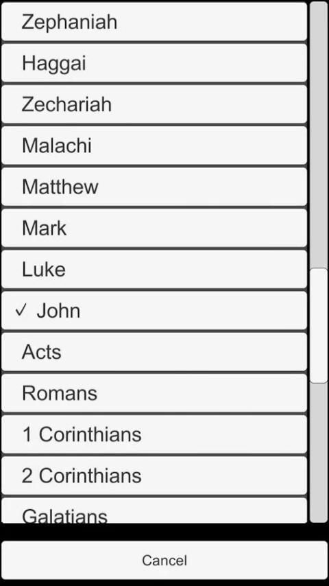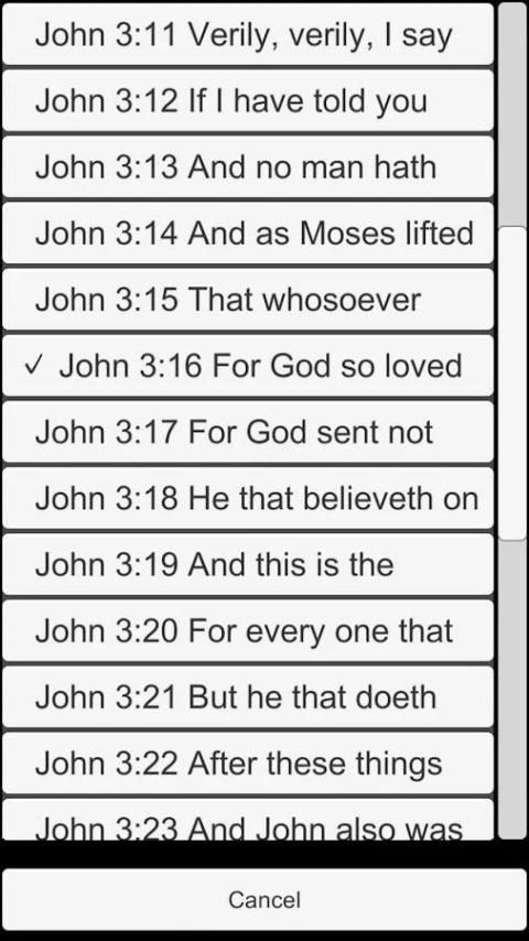 Pilih ayat apapun dari Alkitab King James. Semua huruf dalam ayat akan disembunyikan. Ketika Anda menekan huruf pada keyboard akan muncul jika berada dalam ayat tersebut.