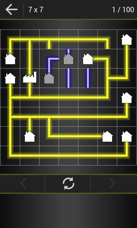 Tujuan Anda adalah untuk menghubungkan setiap rumah di papan untuk pabrik listrik. Ikuti listrik dengan jari Anda, mulai dari pabrik listrik, memutar baris dan membiarkan aliran listrik ke seluruh rumah.