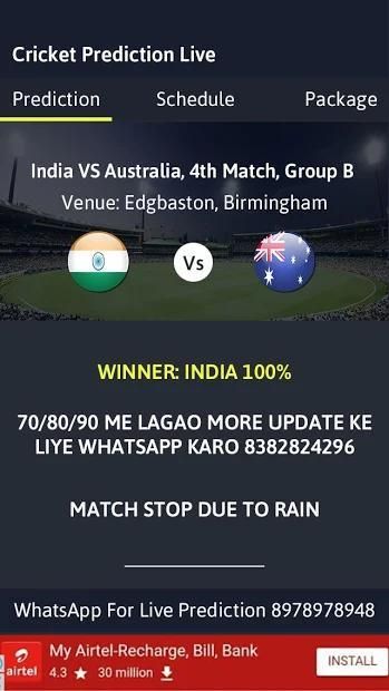 Cricket Prediction Live is a live predictor where all you have to do is predict who is going to win the match. On the basis of pitch reports, previous performance of the team, weather etc.