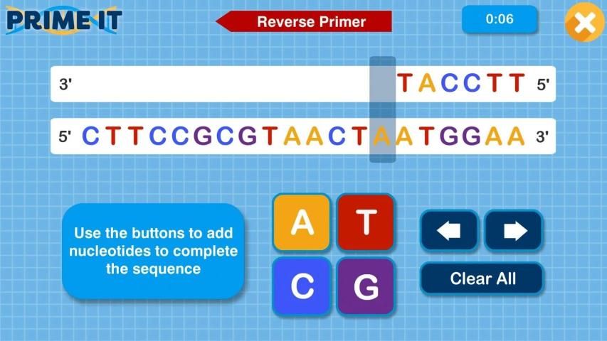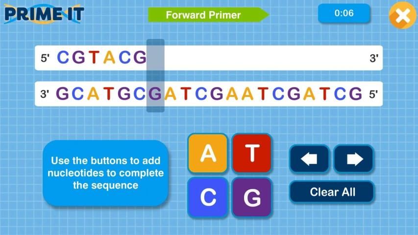Melakukan kursus molekul sebagai bagian dari pendidikan Anda? Game ini ditujukan untuk siswa dengan pengetahuan tentang DNA dan melakukan kursus molekul. Ini dirancang oleh University of Glasgow mahasiswa sarjana dan bertujuan untuk membantu dengan pemahaman Anda tentang PCR desain primer. Kecepatan dan akurasi yang diperlukan untuk mendapatkan skor yang baik!