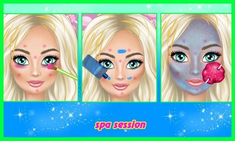 Mulai permainan dan ikuti instruksi untuk menyelesaikan semua tantangan sesi spa. Setelah keindahan ini treament putri kami akan terlihat luar biasa, jadi dia meminta Anda untuk melukis rambutnya dalam berbagai warna, menerapkan riasan warna-warni dan juga lipstik yang mengilap. Sekarang ini adalah transformasi besar, hanya beberapa hal lagi dan keinginannya menjadi kenyataan. Selanjutnya, pilih pakaian yang bagus untuk putri permen kami. Anda dapat memilih gaun atau rok dengan atasan yang lucu. Tambahkan beberapa aksesori dan sang putri siap dan bahagia. Selamat bersenang-senang!