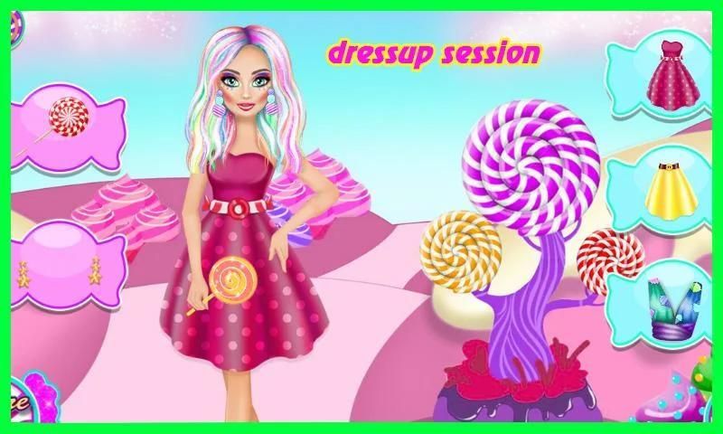 Start the game and follow the instructions to complete all the spa session challenges. After this beauty treament our princess should look amazing, so she asks you to paint her hair in many colors, apply a colorful makeup and also a shiny lipstick. Now it's a big transformation, only a few things more and she's desire comes true. Next, choose a nice outfits for our candy princess. You can opt for a dress or a skirt with a cute top. Add some accessories and the princess is ready and happy. Have fun!