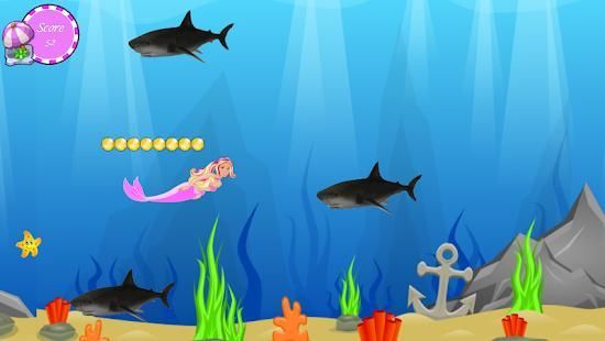 Mermaid swim with beautiful tale.Miss Princess swim and escape shark attack. Catch all coins and Quickly swim among the rocks.