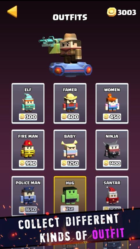 - 15 types of shooter character in outfits as wild west cowboy, santar, police, fire man, baby, kid, farmer, doctor, boy, girl, worker ...