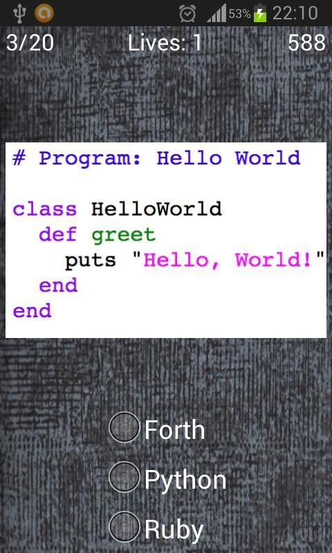 Saat ini, kami menemukan aplikasi yang sangat populer. 30,000+ Pengguna mendownload Programming Languages Quiz versi terbaru di 9Apps secara gratis! Banyak fungsi dan fitur yang terdapat dalam aplikasi ini. Aplikasi HOT ini di rilis tanggal 2017-11-17. Nikmati bermain dengan fitur baru yang mengagumkan!
