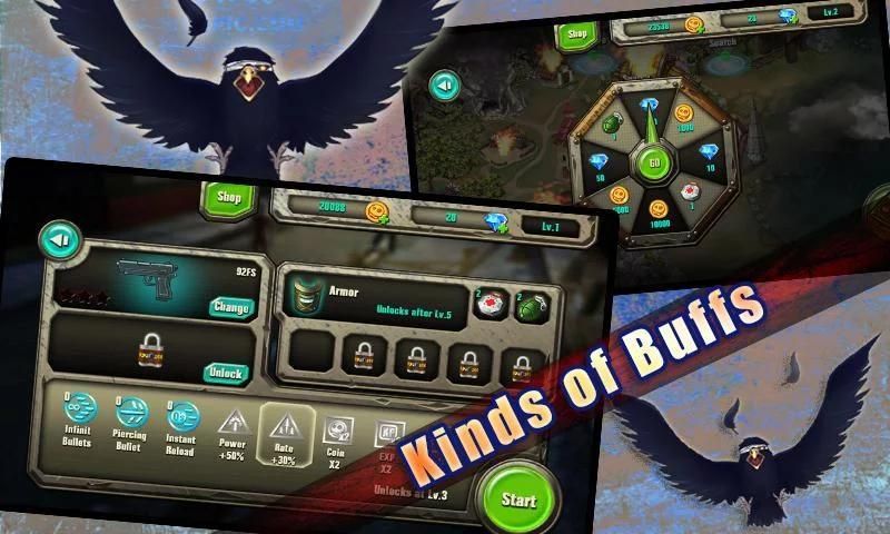 - Kinds of Buffs: equip them to make the Zombies thrill!