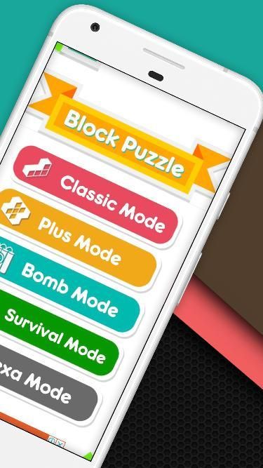 Block Puzzle adalah permainan puzzle yang sederhana namun sangat membuat ketagihan tentang blok. Mirip dengan Color Fill, tujuannya adalah untuk menyelesaikan seluruh papan dengan menyeret potongan blok. Blok tidak dapat diputar, dan papan berubah secara horizontal dan vertikal setiap tingkat, dengan jumlah baris dan kolom yang berbeda setiap kali. Mode heksa akan ditambahkan di masa mendatang.