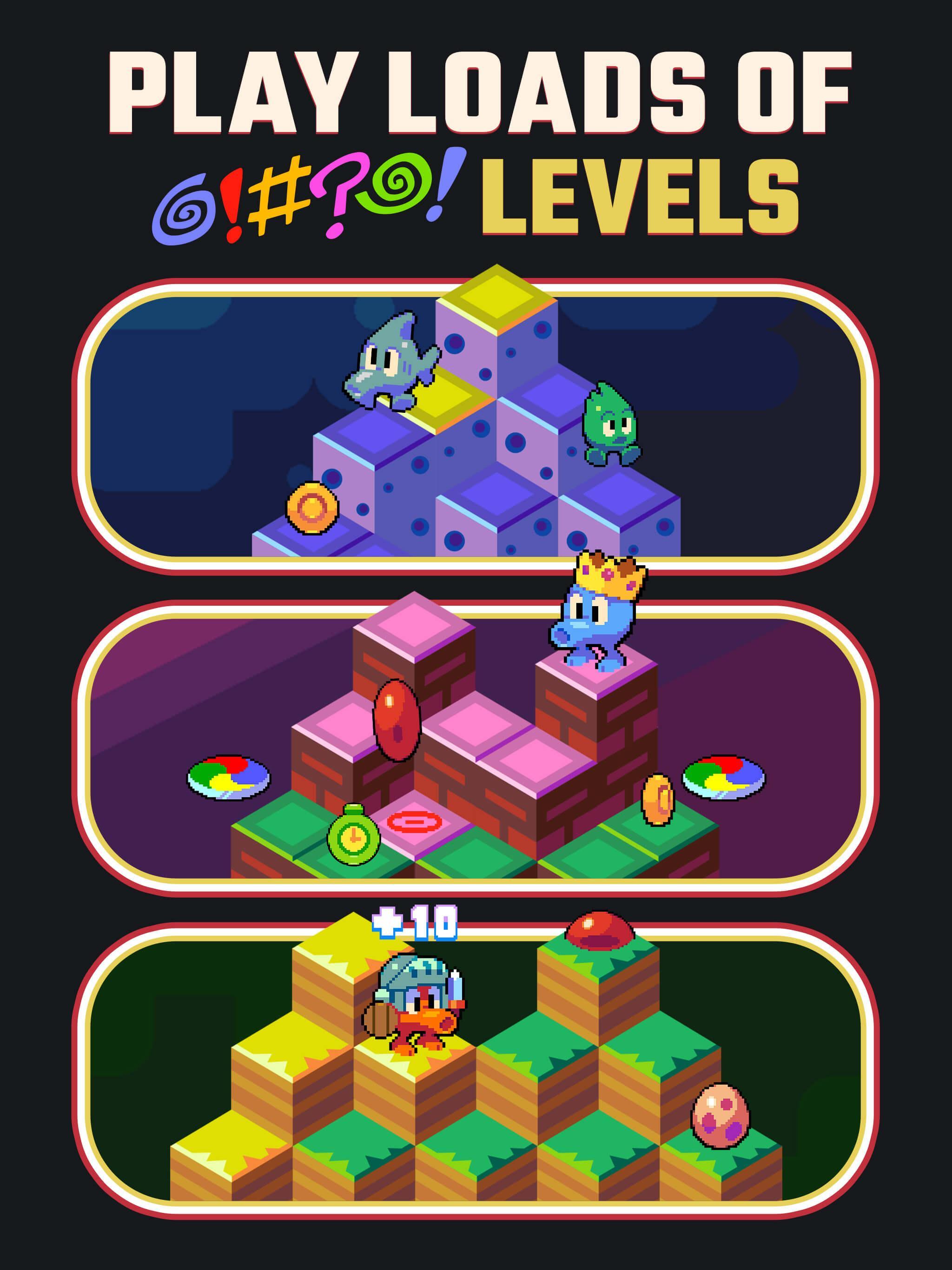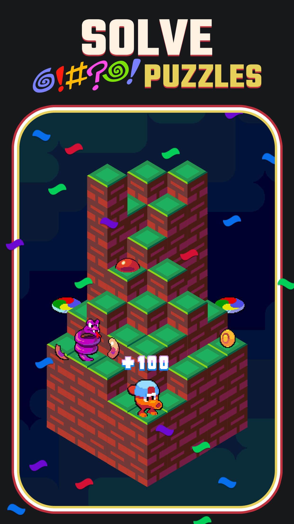 Help Q*bert solve isometric puzzles while avoiding enemies in an all new experience! With intuitive swipe controls, jumping around ever-changing levels is easier than ever before. Outwit Coily by creating your own path across dozens of patterns. Complete classic and new levels to unlock and play as Q*bert's friends. How long can you jump @!#?@!