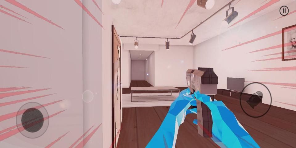 To move in any direction you have to use joystick in the bottom left corner. To look around you can swipe anywhere on the screen. If you want to shoot just use button in bottom right corner. Pause button is situated in the top right corner.