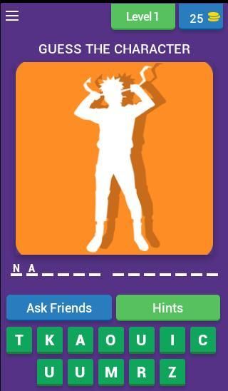 Ini adalah teka-teki di mana Anda harus menebak nama karakter. Anda dapat meminta bantuan dari teman atau jika Anda terjebak, Anda dapat membeli koin dan memecahkan teka-teki.