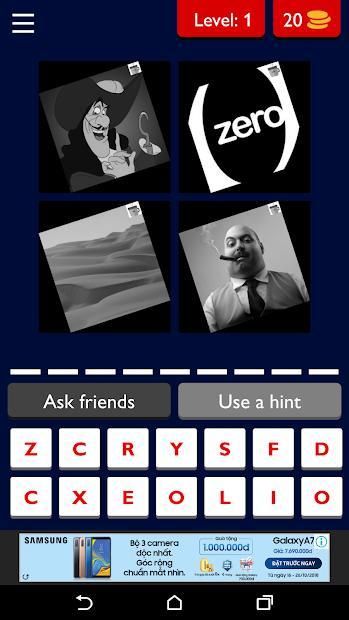 - Temukan kesamaan dalam 4 gambar untuk membantu Anda menemukan karakter.