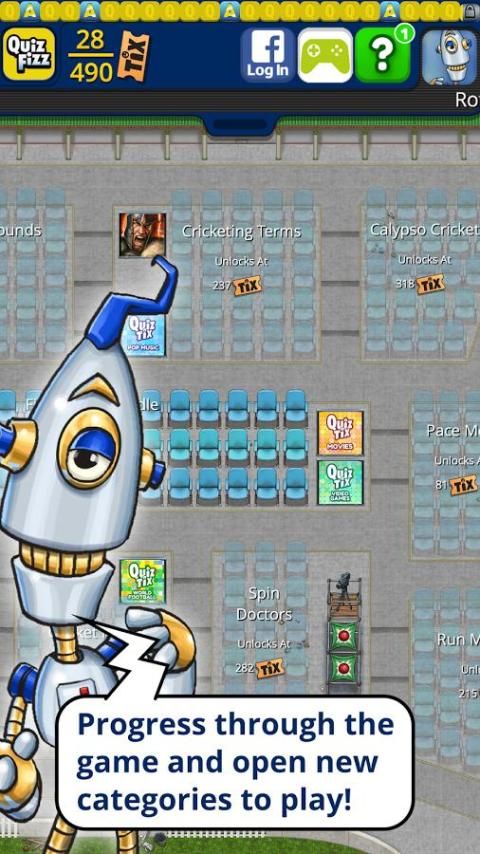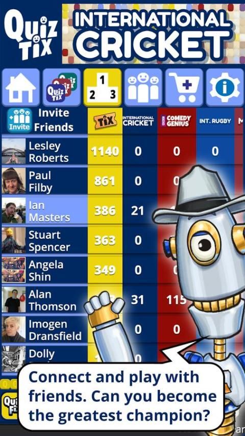 Yang memiliki kerumunan terbesar penggemar kriket? Membangun Tix Anda di semua game, login dan membandingkan kemajuan Anda dengan teman-teman dan menjadi raja leaderboards. Menyelesaikan blok kursi untuk memutar roda bonus dan memenangkan Kuis Fizz dan power-up. Mainkan permainan secara offline penuh atau terhubung dengan teman-teman.