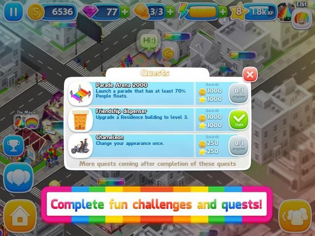 • Share Your Pride! Robust social features include in-game chat, the ability to visit each other’s cities, and more. Meet people from around the world and build your own community of Pride!