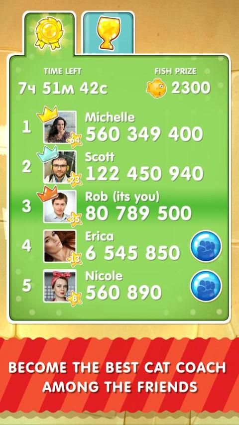 The gameplay is pretty simple: you just make chains from cats of different colors. Also there are Supercats each with a different superpower. They will help you during gameplay in order to become the best cat coach of all time