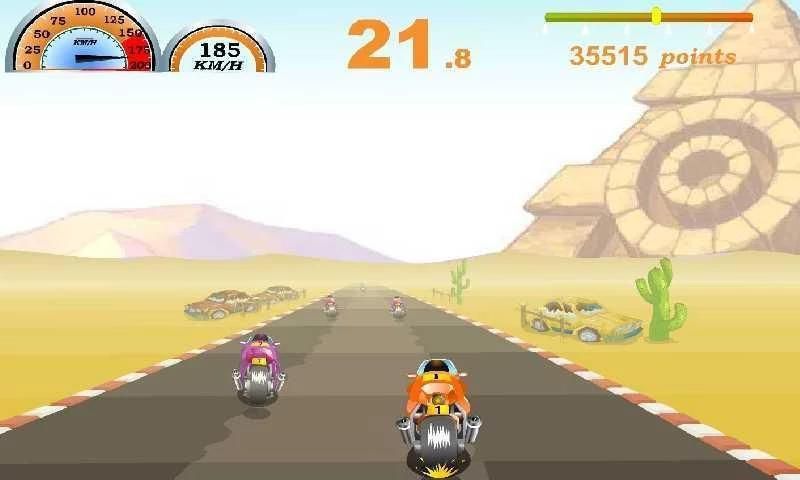 Balap Moto adalah game balap serba cepat. Anda tidak pernah berani berkendara begitu cepat di dunia nyata! Kontrol moto Anda dengan kecepatan yang luar biasa selama waktu lalu lintas terburu-buru! Juga menikmati pemandangan indah selama perjalanan - gurun, kota, es dunia dan pegunungan!