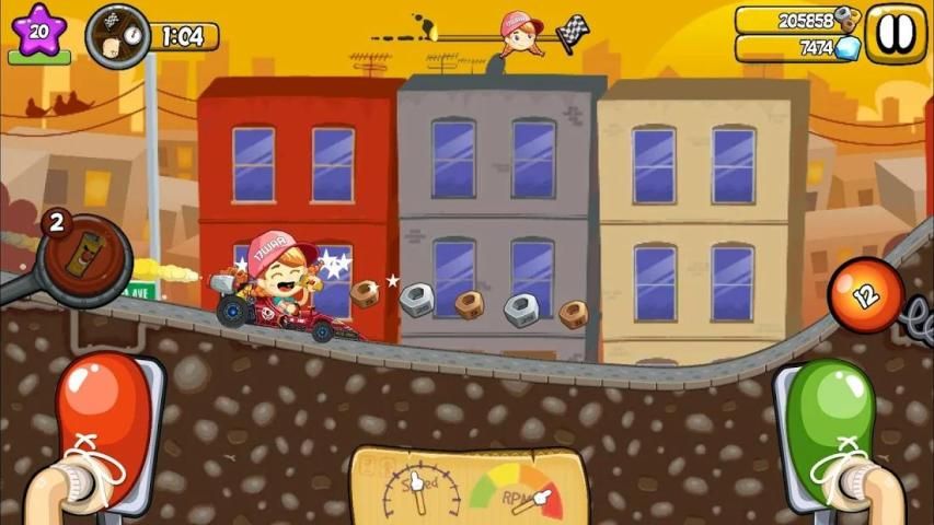 Kumpulkan kacang untuk meng-upgrade mobil Anda dan melewati tingkat pendakian bukit yang sulit. Kalahkan bos jahat untuk mendapatkan lebih banyak hadiah dan atur perhatian.