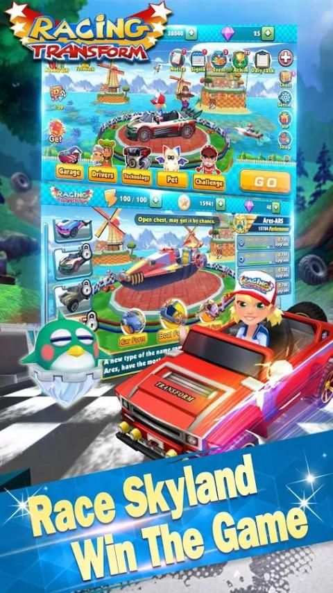 Racing Transform - Racing di Skyland dengan Mobil, Pesawat, Kapal transformasi!