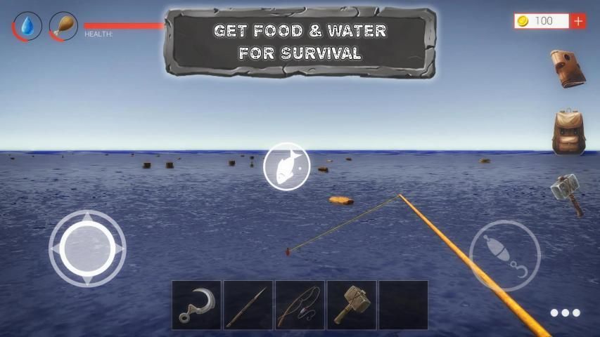 Gather resources to survive in the open ocean. Make it in a classical way (by picking on the stranded deep) or with hook, standing on the raft during water survival.