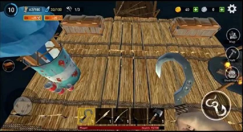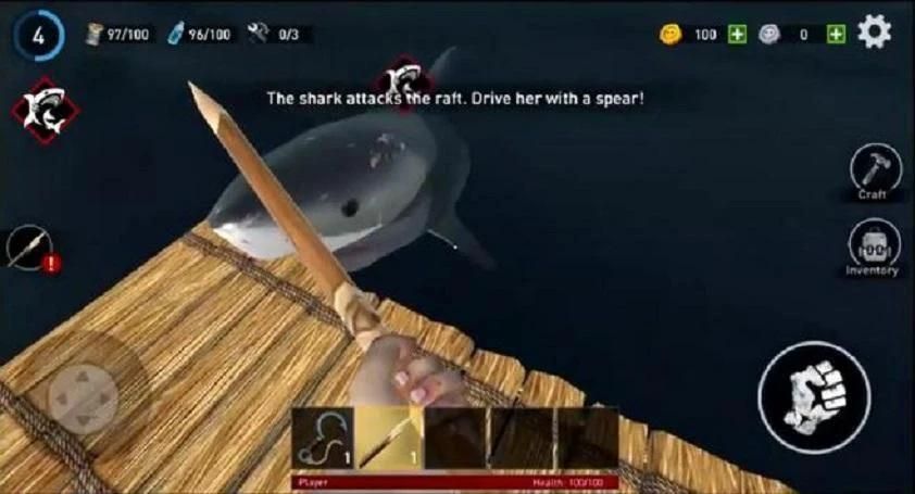 Imagine that you are only one person is survived after catastrophic crash in sea! You found yourself all alone on the small raft wandering in the sea. There are no signs of earth nearby. You see all kinds of debris passing by that made you realize that you are the only survivor of ship crash! Now you need to fight and struggle for your life if you want to survive! The angry and hungry shark is always near your raft, waiting for you to fall down so you gotta be careful! Gather resources from the water to craft equipment and instruments, find food and drinkable water to stay alive and expand your raft to create more comfortable place to live in!