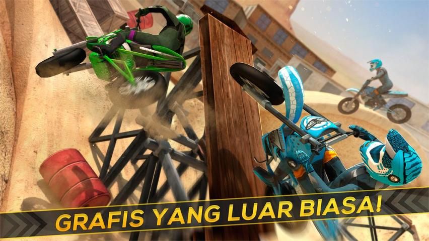 Anda dapat melakukan loopings dan stunts dengan sepeda motor trail Anda yang akan menambah lebih banyak skor untuk mengalahkan rekor.