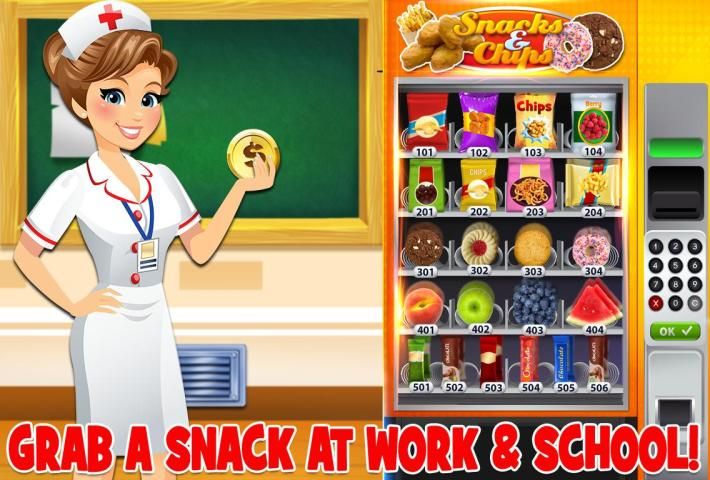 Mesin penjual selalu menjadi hit di sekolah, pekerjaan & tempat-tempat lain. Mencari camilan cepat & minuman, atau permen - datang mengunjungi mesin, dan drop koin Anda dan membuat pilihan!