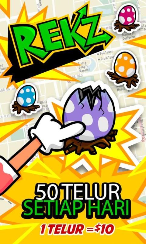 ★ Perbesar peta sampai ikon Rekz berubah menjadi hijau, dan temukan Rekz atau telurnya dan kemudian tekan, lalu bagikan kemenanganmu dan dapatkan uangnya! ★