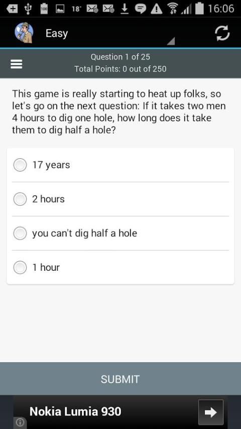 Jika Anda keluar dari kuis Anda selalu dapat melanjutkan di mana Anda tinggalkan!