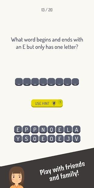You are making brain cells when you solve riddles! Each level has fun riddles, can you guess the word? Beat this game and you will be SMARTER!