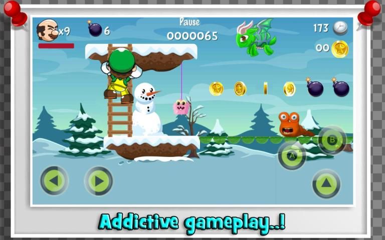 gameplay sederhana, baik grafis, monster lucu dan suara, kontroler klasik, sangat lucu dan sangat menarik, Anda dapat membantunya slide, melompat, kebakaran, serangan