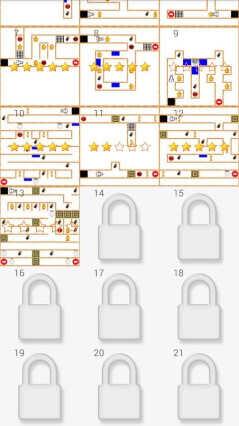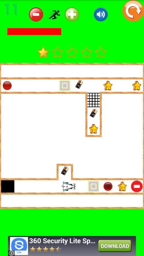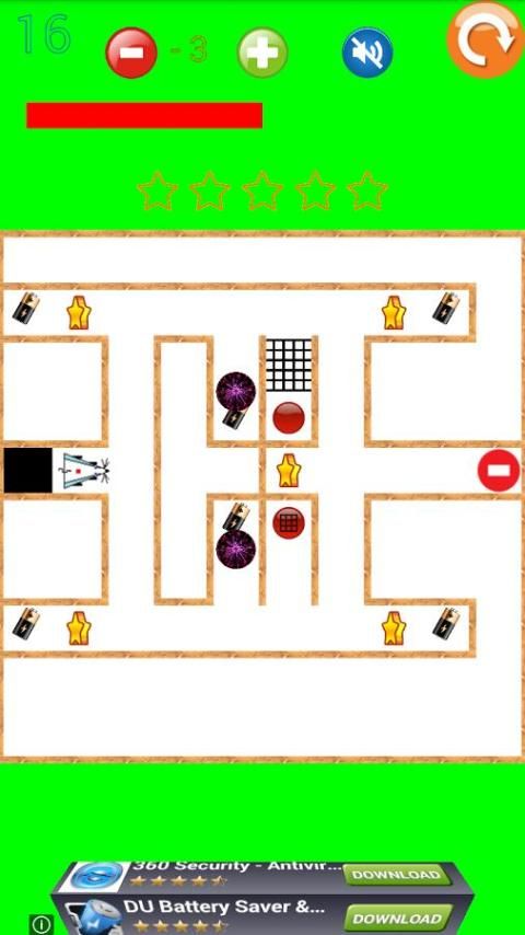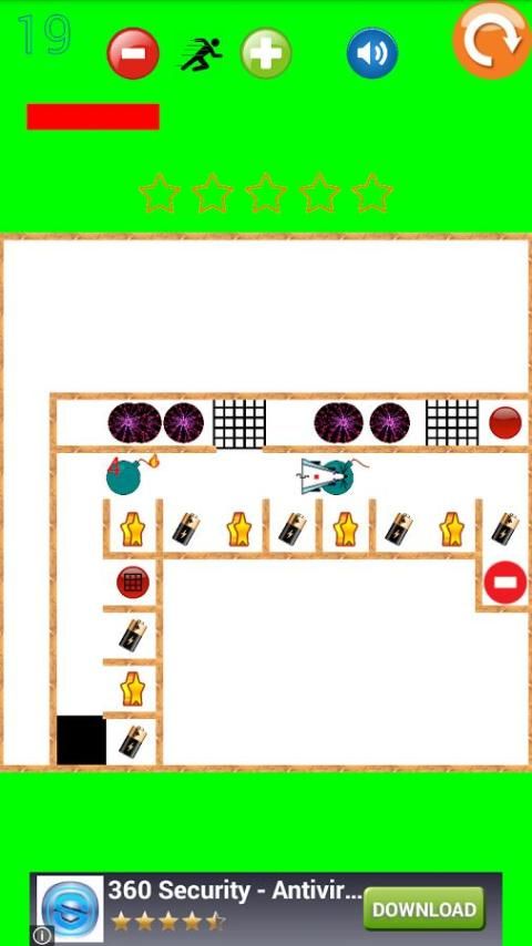 Labirin berisi hambatan bergerak dan openable, perangkap (gergaji), teleporter, "guzzlers energi" dan bom.