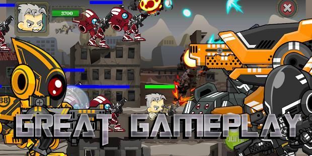 Robot war Is s unique action game. Its intense and action pack battle. Every mission is different, lead the robot forces to victory. Shoot and destroy enemy, boss fight, gain medal and use to upgrade weapon , buy new equipment and buy new outfit.