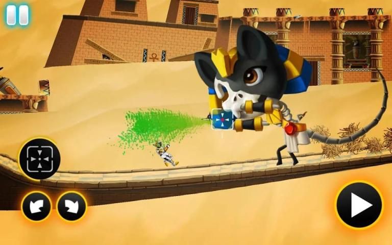 Welcome to ancient Egypt! Egyptian mummies came out of they graves and made a chaos on a desert! They paired up with zombies, giant kittens, crocodiles and enemy robots to occupy and rule the land. Become a brave hero, fight against villains and defend the occupied desert.